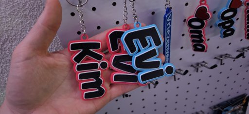 Sleutelhangers met uw eigen naam worden op bestelling gemaakt.
